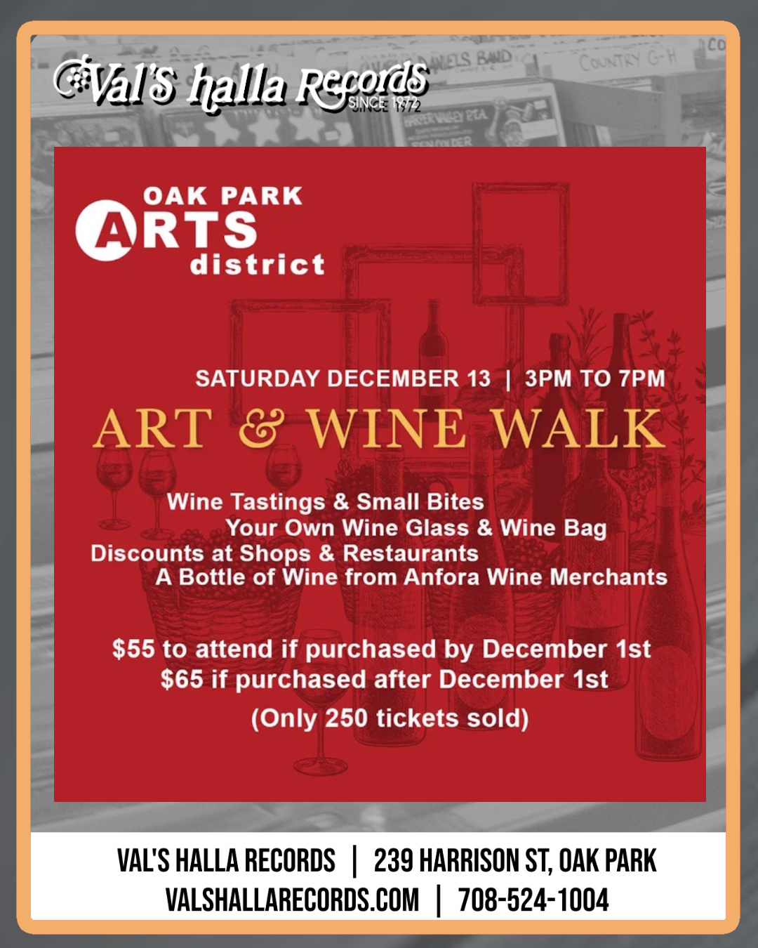 Val’s is excited to participate in the Oak Park ARTS District’s ART & WINE WALK!