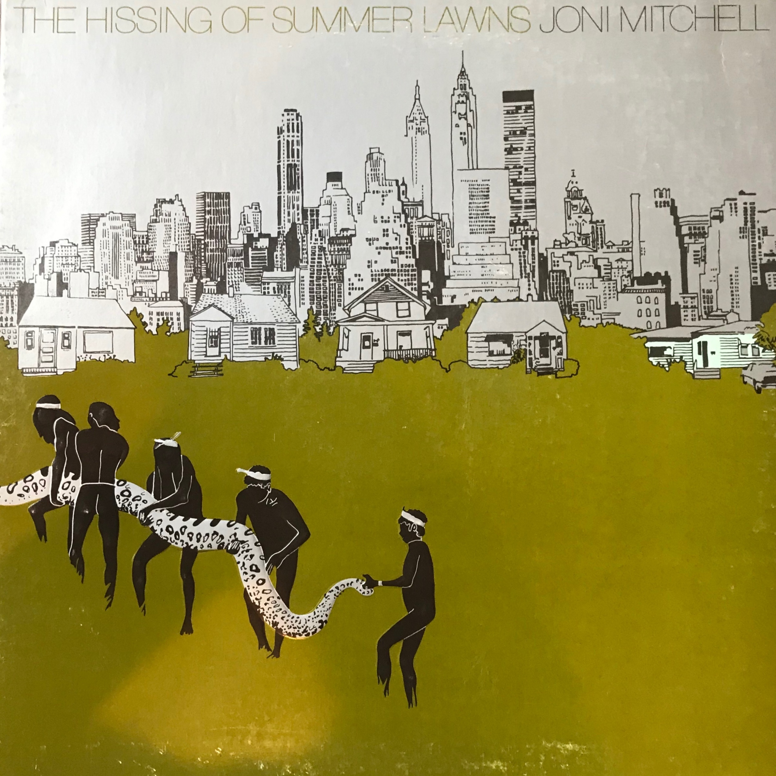The Hissing of Summer Lawns is the seventh studio album by the Canadian singer-songwriter Joni Mitchell, released in 1975. Mitchell went into the studio in early 1975 to record acoustic demos of some songs that she had written since the Court and Spark tour. A few months later she recorded versions of the tunes with her band. Her musical interests were now diverging from both the folk and the pop scene of the era, toward less structured, more jazz-inspired pieces, with a wider range of instruments. On “The Jungle Line”, she made an early effort at sampling a recording of African musicians, something that became more commonplace among Western rock acts in the 1980s. “In France They Kiss on Main Street” continued the lush pop sounds of Court and Spark, and efforts such as the title song and “Edith and the Kingpin” chronicled the underbelly of suburban lives in Southern California.